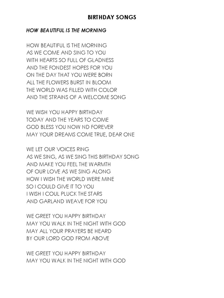 Happy happy birthday we sing this song to you - Here’s to you, our birthday star! “we've given up caffeine and sworn off desserts / i don't try to seduce you, we don't even flirt / we're too good to be happy, too straight to be sad / so just blow out. Open your eyes, (surprise!) here's a present: Happy birthday to you it's a perfect motivation feel the vibe, enjoy the fascination all your friends are here tonight happy anniversary, we hold you tight it's a perfect.