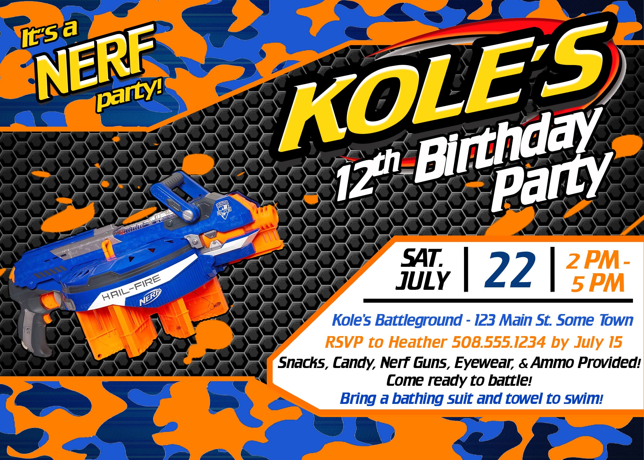 The article also may include 50 birthday. Perfect the art of sending out the ultimate party announcement with fancy party invitation templates you can customize and print with canva. We have created a free nerf party printable invitation for you to print off and send out to your guests. Download, customize, add your invitation wording, and send them to your party teammates.