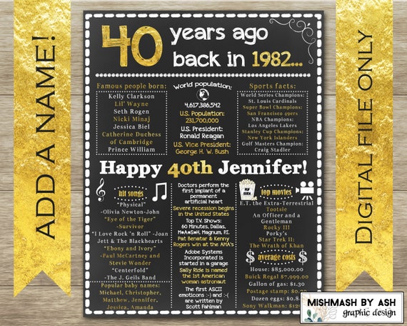 Source: www.etsy.com 40Th Birthday Gift 40Th Birthday Husband Back In 1982 Happy - Etsy